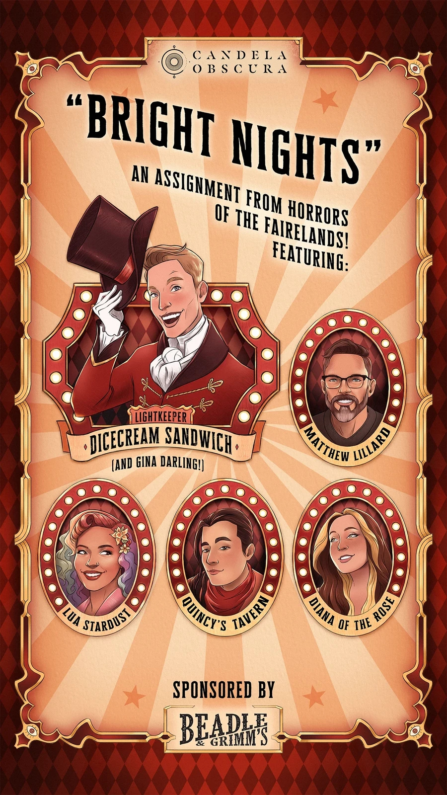 Social media posters (for posts and stories) announcing the upcoming stream of new gameplay for the Candela Obscura system, featuring TTRPG talent!